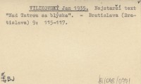 VILIKOVSKÝ Jan 1935 Nejstarší text "Nad Tatrou sa blýska".