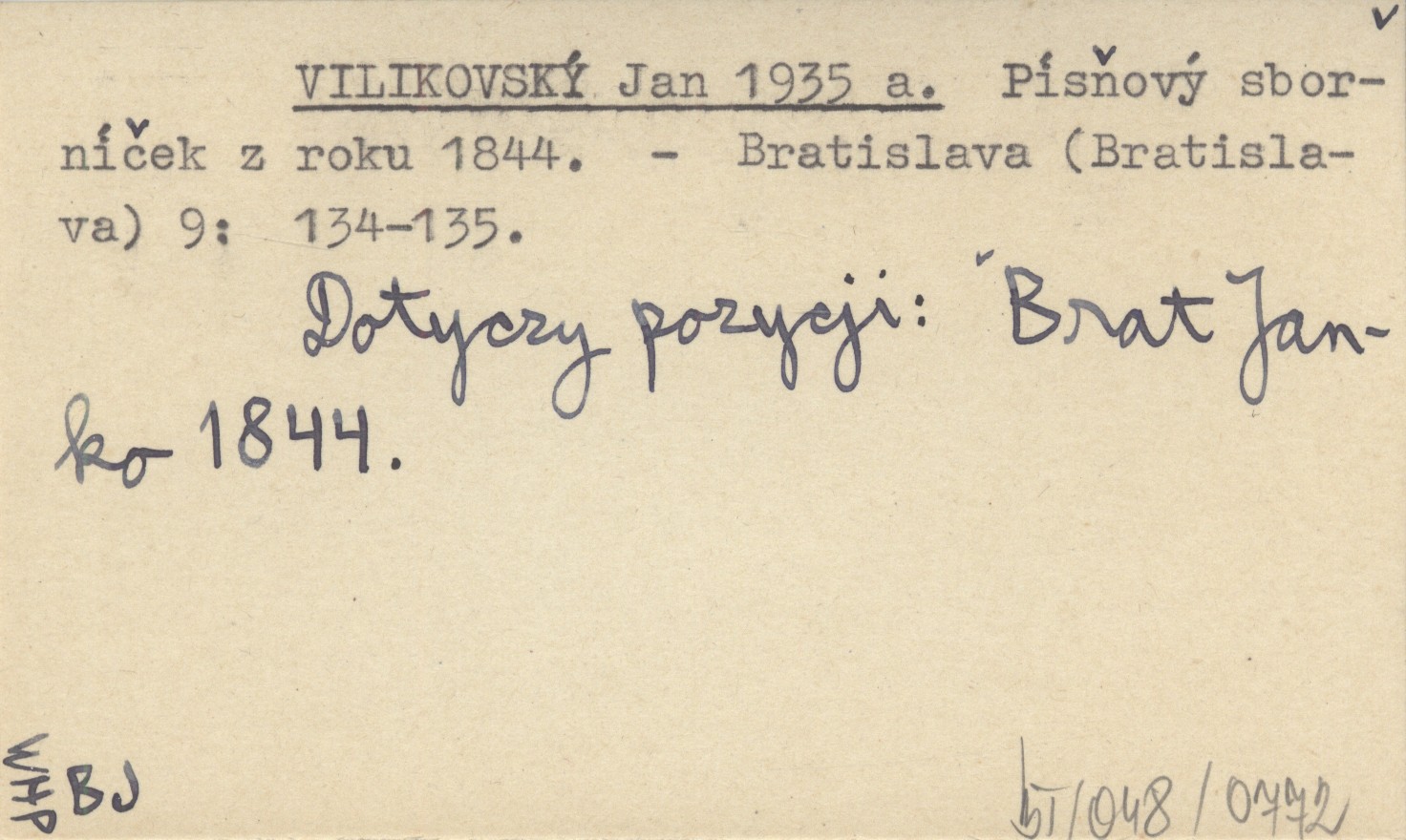 Bratislava (Bratislava) , 9: 134-135. Dotyczy pozycji: Brat Janko 1844.