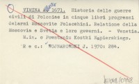 VIMINA Alberto 1671 Historia delle guerre civili di Poloniae in cinque libri progressi delarmi Moscovite Polacehini. Relatione della Moscovia e Svetia e loro gewerni.