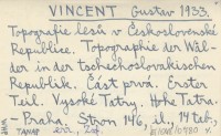 VINCENT Gustav 1933 Topografie lesů v Československé Republice. Topographie der Wälder in der tschechoslovakischen Republik. Část prvá. Erster Teil. Vysoké Tatry. Hohe Tatra.