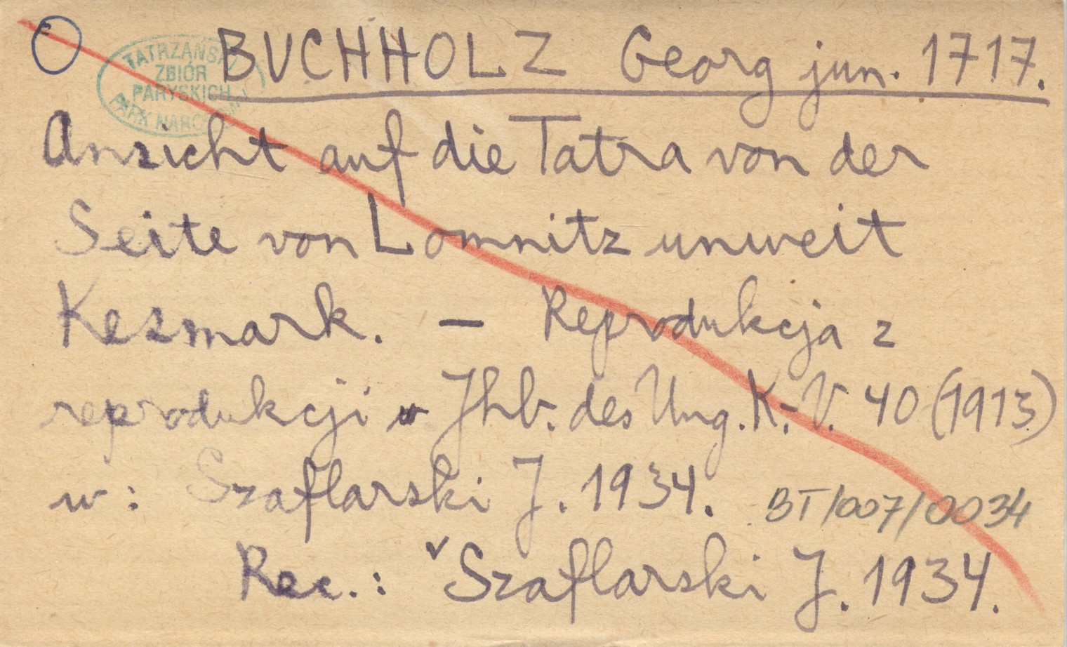 BUCHHOLZ Georg jun. 1717 Anzicht auf die Tatra von der Seite von Lomnitz unweit Kesmark.