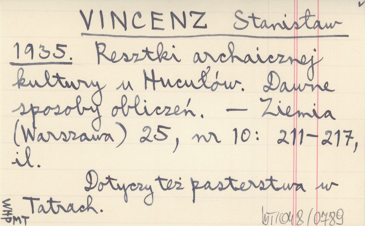 VINCENZ Stanisław 1935 Resztki archaicznej kultury u Hucułów. Dawne sposoby obliczeń.