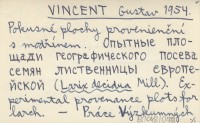 VINCENT Gustav 1954 Pokusné plochy provenienční s modřínem. Experimental provenance plots for larch.