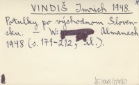 VINDIŠ Imrich 1948 Potulky po východnom Slovensku.