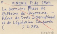 VINEUIL P. de 1924 La derniére phase de l'affaire de Javorzina.