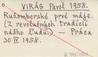 VIRÁG Pavol 1958 Ruľomberské prvé máje. (Z revolučných tradícií náąho µudu).