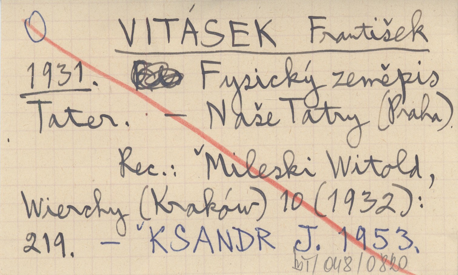 Naše 1931. Naše Tatry (Praha) , S. 13-215, il. REC: MILESKI Witold, Wierchy (Kraków) 10 (1932): 219 ; KSANDR J. 1953 ;