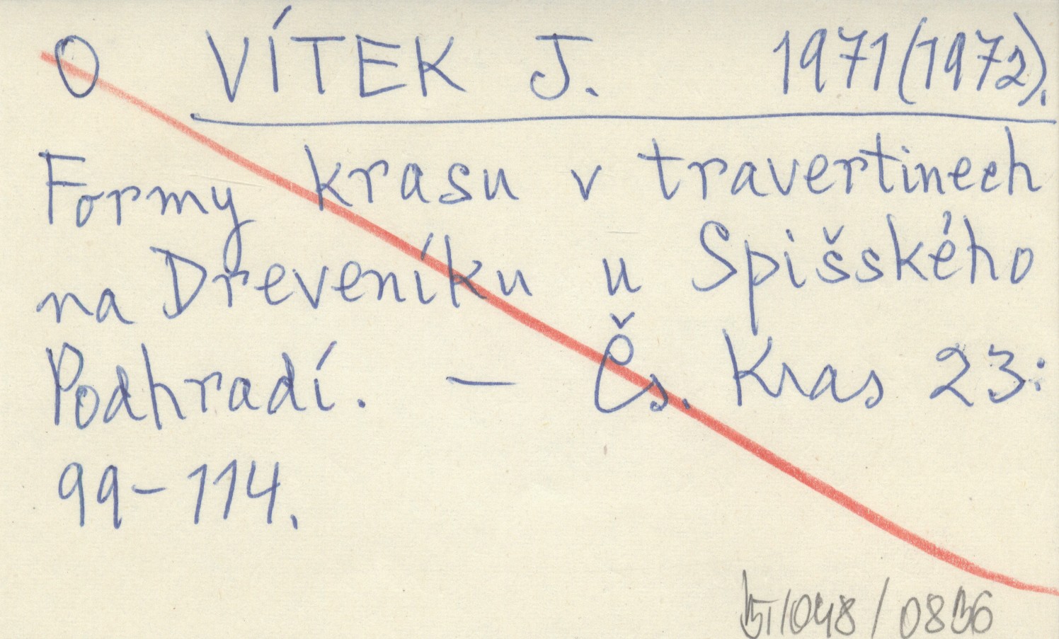 VÍTEK J. 1971 (1972) Formy krasu v travertinech na Dreveníku u Spišského Podhradí.