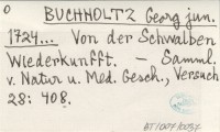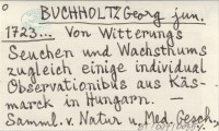 BUCHHOLTZ Georg jun. 1723... Von Witterungs Seuchen und Wachsthums zugleich einige individual Observationibus aus Käsmarck in Hungarn.