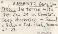 BUCHHOLTZ Georg jun. 1723... De terrae motu 1724 Jan. 29 in Comitatu Scep. observatae.