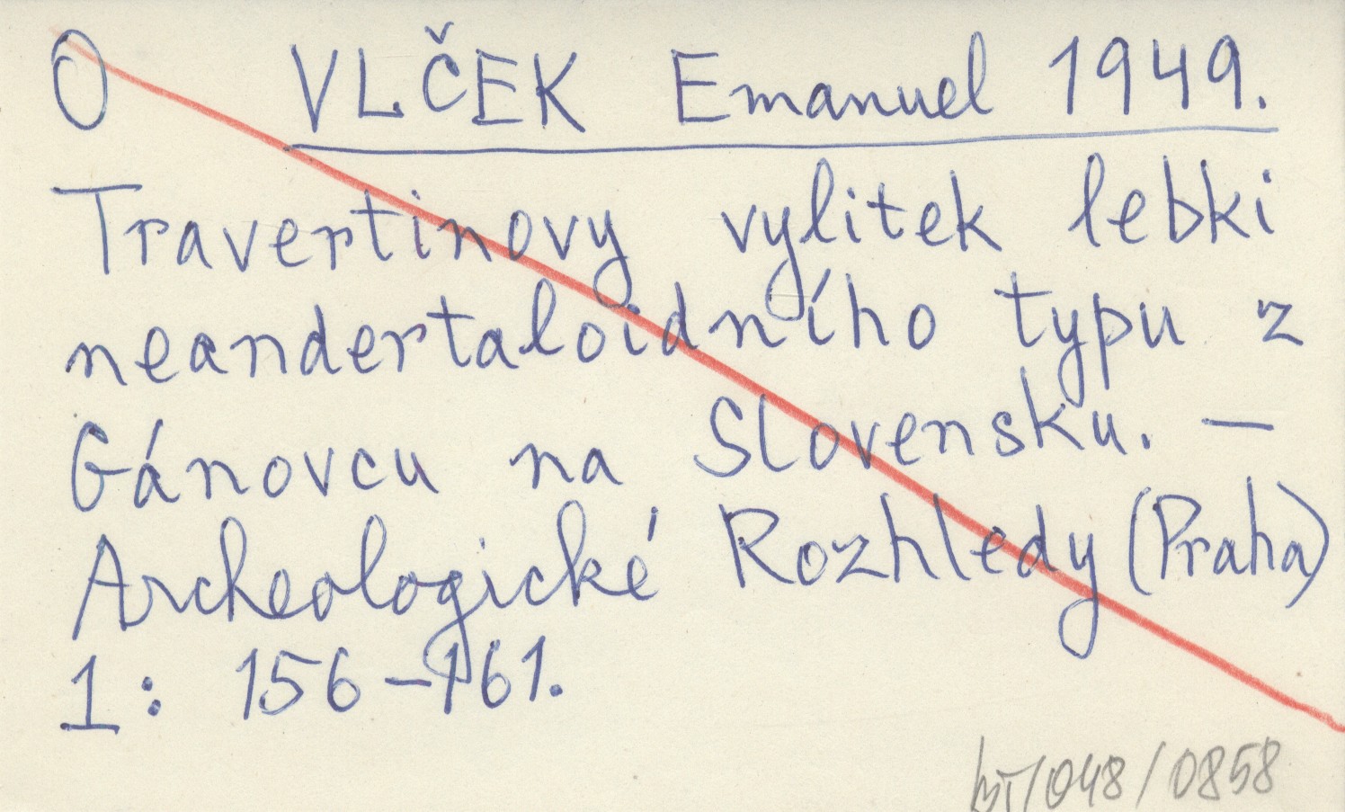 VLČEK Emanuel 1949 Travertinovy vylitek lebki neandertaloidního typu z Gánovcu na Slovensku.