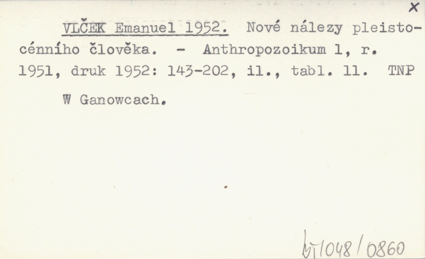 VLČEK Emanuel 1952 Nové nálezy pleistocénního člověka.