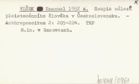 VLČEK Emanuel 1952 a Soupis nálezů pleistocénního člověka v Československu.