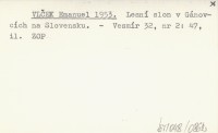 VLČEK Emanuel 1953 Lesní slon v Gánovcích na Slovensku.