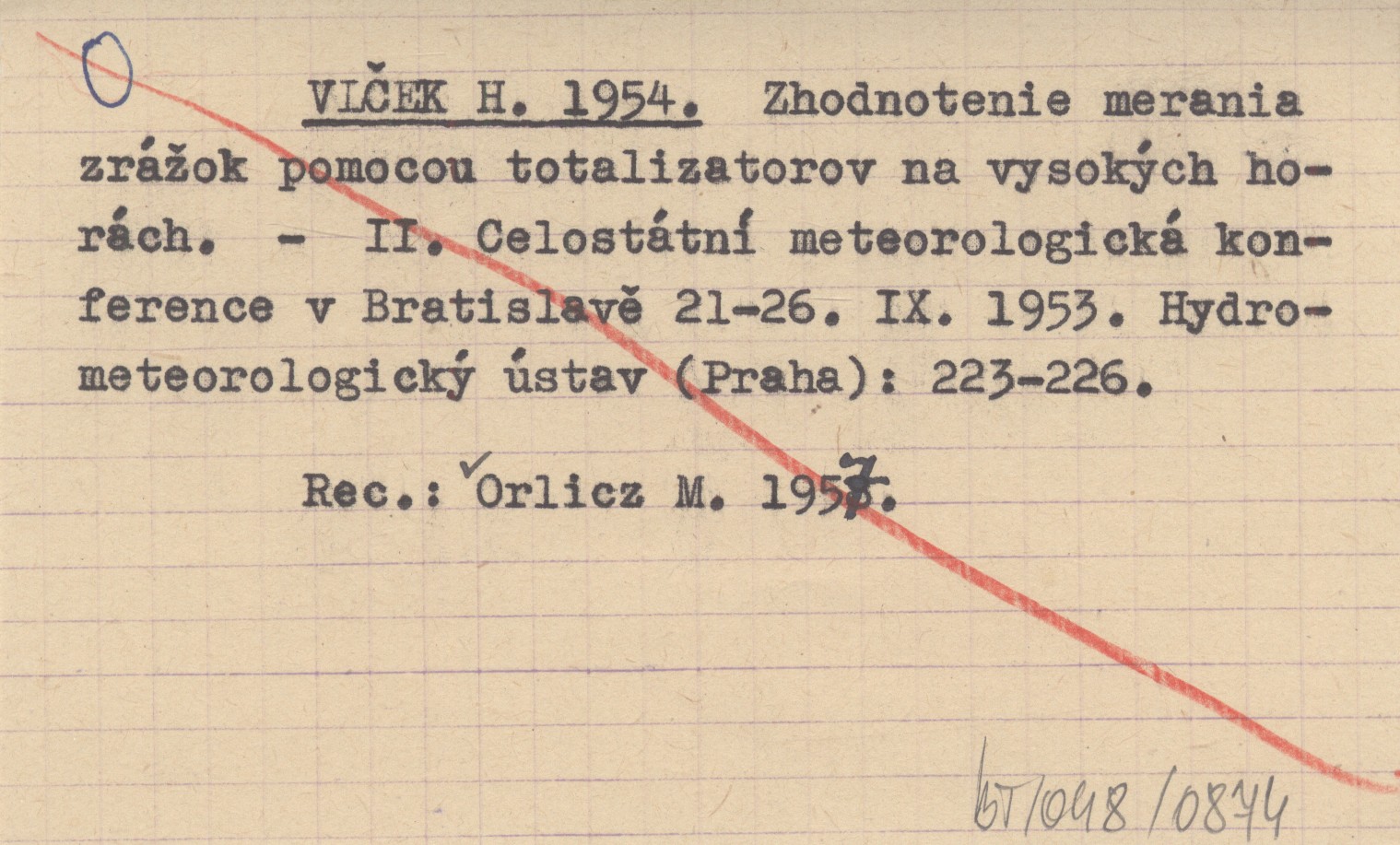 VLÈEK H. 1954 Zhodnotenie merania zráŸok pomocou totalizatorov na vysokęch horách.