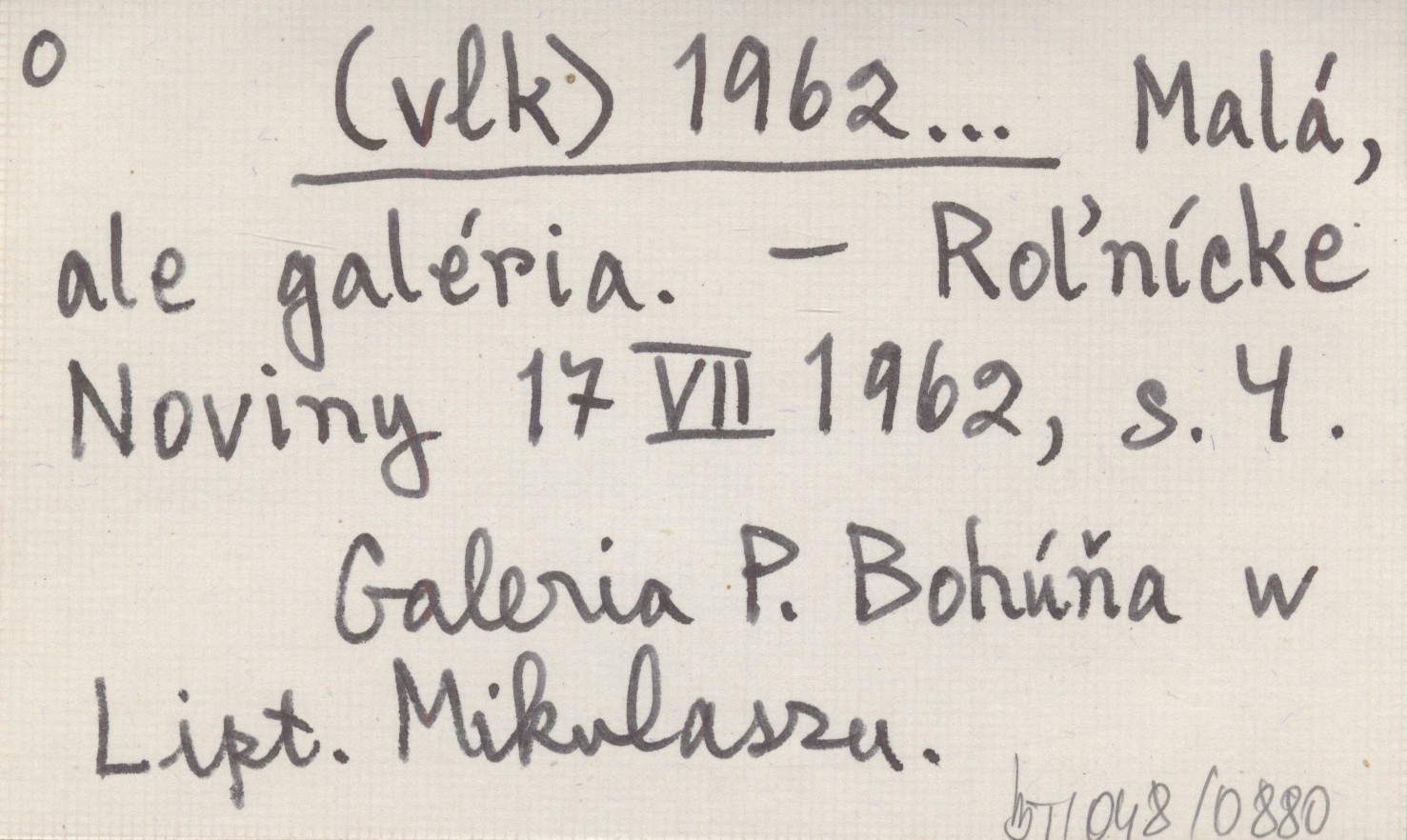 Roľnícke Noviny, 17 VII 1962: 4. Galeria P. Bohúňa w Lipt. Mikulaszu.