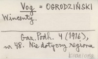 Vog OGRODZIŃSKI Wincenty Gazeta Podhalańska 4 (1916), nr 48. Nie dotyczy regionu.