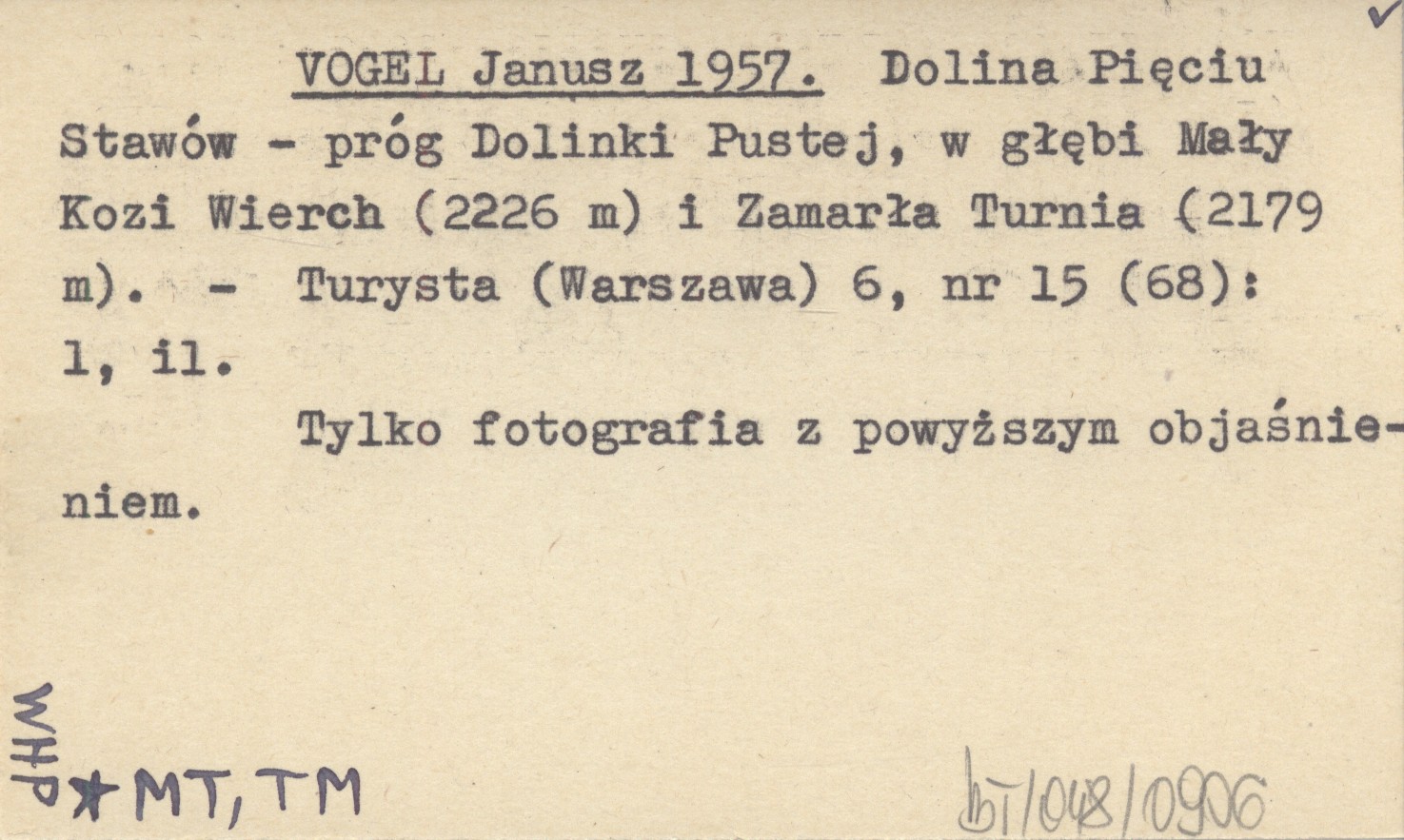 VOGEL Janusz 1957 Dolina Pięciu Stawów - próg Dolinki Pustej, w głębi Mały Kozi Wierch (2226 m) i Zamarła Turnia (2179 m).