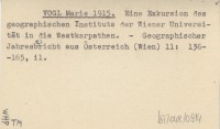 VOGL Marie 1915 Eine Exkursion des geographischen Instituts der Wiener Universität in die Westkarpathen.