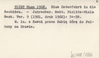 VOIGT Hugo 1902 Eine Osterfahrt in die Beskiden.