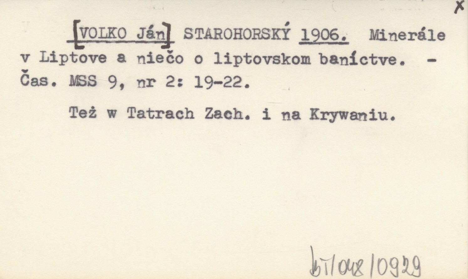STAROHORSKÝ [VOLKO Ján] 1906 Minerále v Liptove a niečo o liptovskom baníctve.