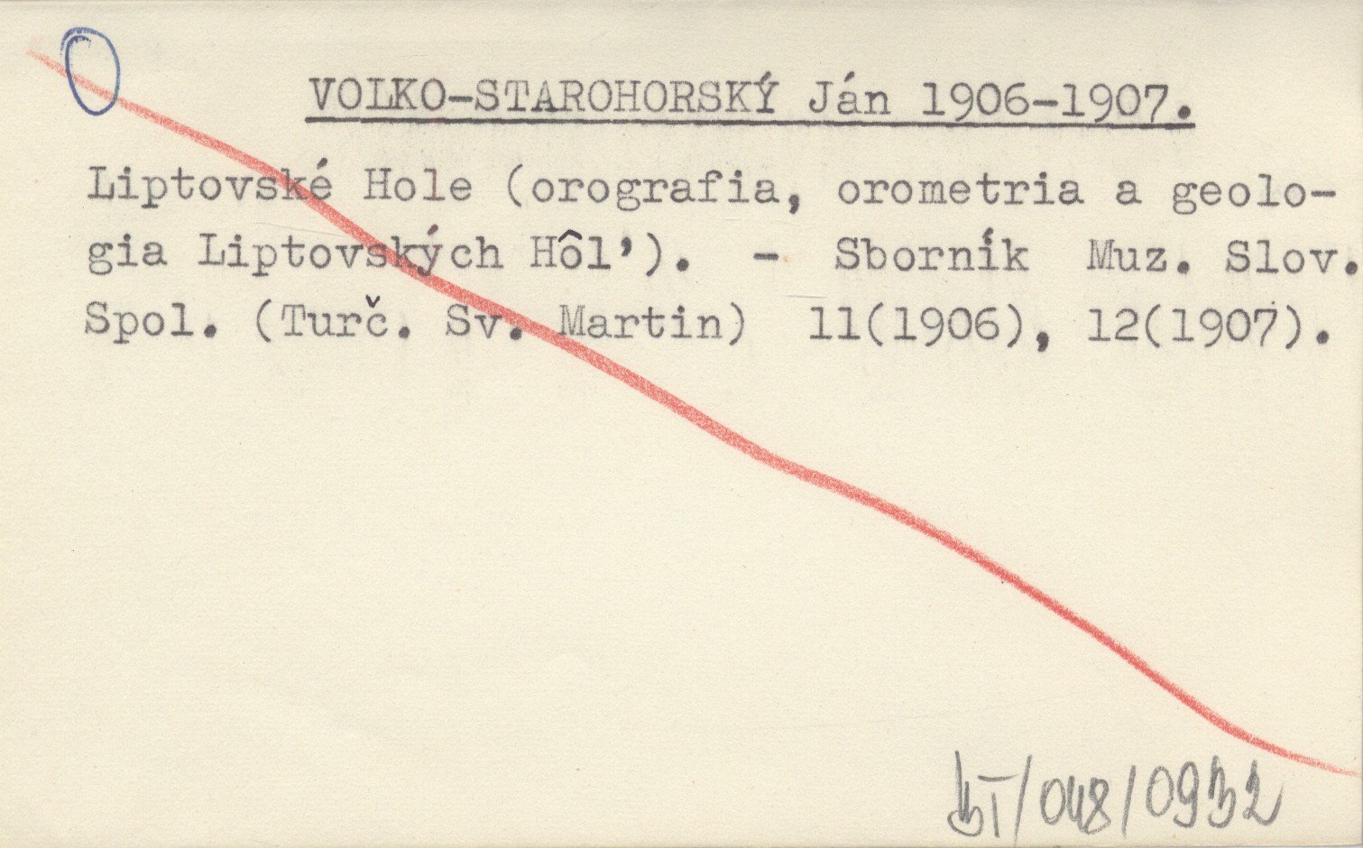 VOLKO-STAROHORSKĘ Ján 1906-1907 Liptovské Hole (orografia, orometria a geologia Liptovskęch Hô”).