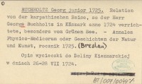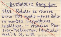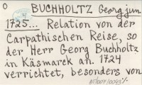 BUCHHOLTZ Georg jun. 1724 Relatio de itinere anno 1724 medio mense Julio in montes Carpathicos instituto.