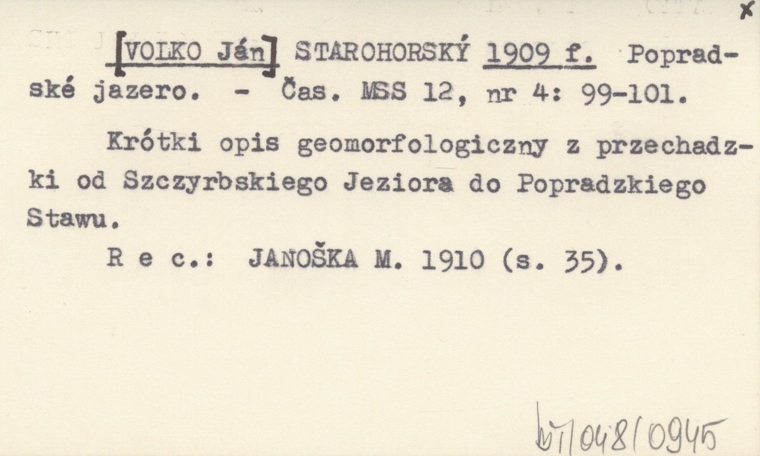 Časopis Muzeálnej Slovenskej Spoločnosti, 12, nr 4: 99-101. Krótki opis geomorfologiczny z przechadzki od Szczyrbskiego Jeziora do Popradzkiego Stawu. REC: JANOŠKA M. 1910 (s. 35)