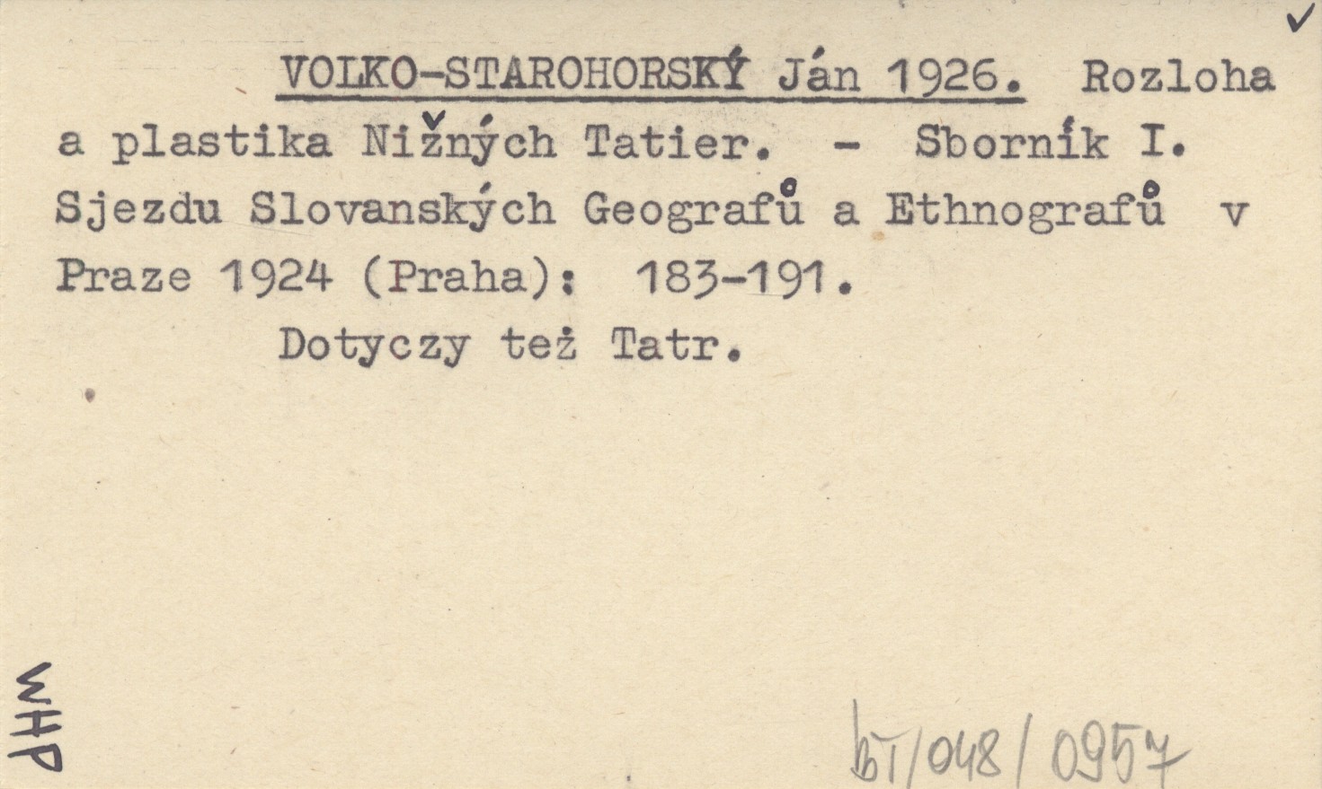 VOLKO-STAROHORSKĘ Ján 1926 Rozloha a plastika NiŸnęch Tatier.