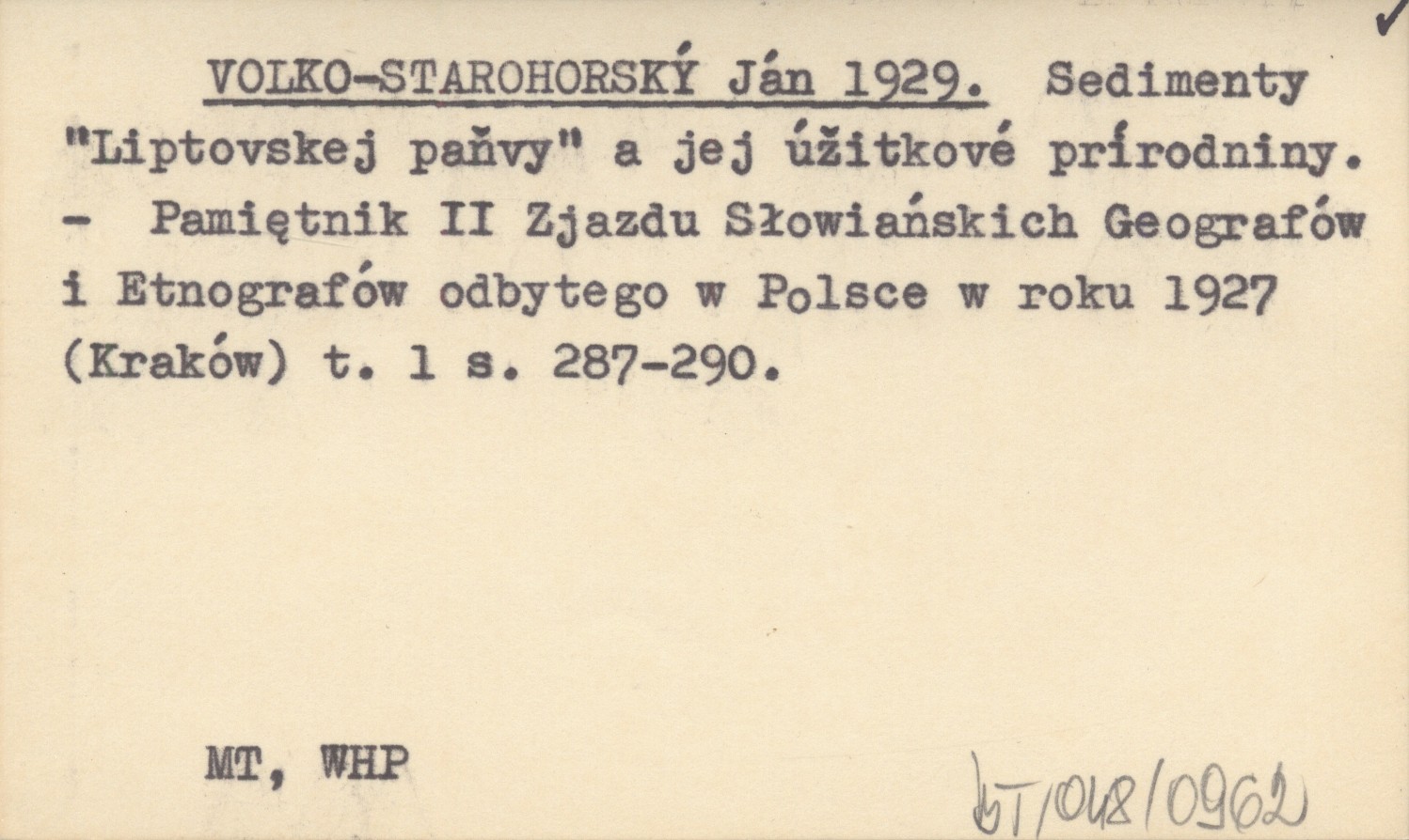 VOLKO-STAROHORSKÝ Ján 1929 Sedimenty "Liptovskej paňvy" a jej úžitkové prírodniny.