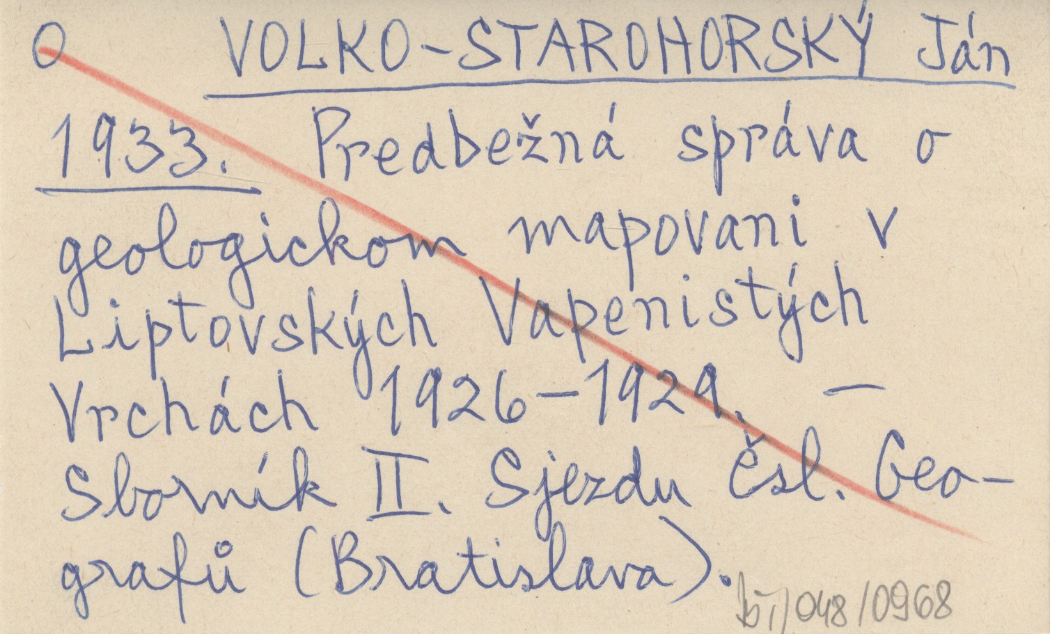 VOLKO-STAROHORSKĘ Ján 1933 PredbeŸná správa o geologickom mapovani v Liptovskęch Vapenistęch Vrchách 1926-1929.