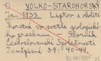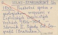 VOLKO-STAROHORSKÝ Ján 1933 Predbeľná správa o geologickom mapovani v Liptovských Vapenistých Vrchách 1926-1929.