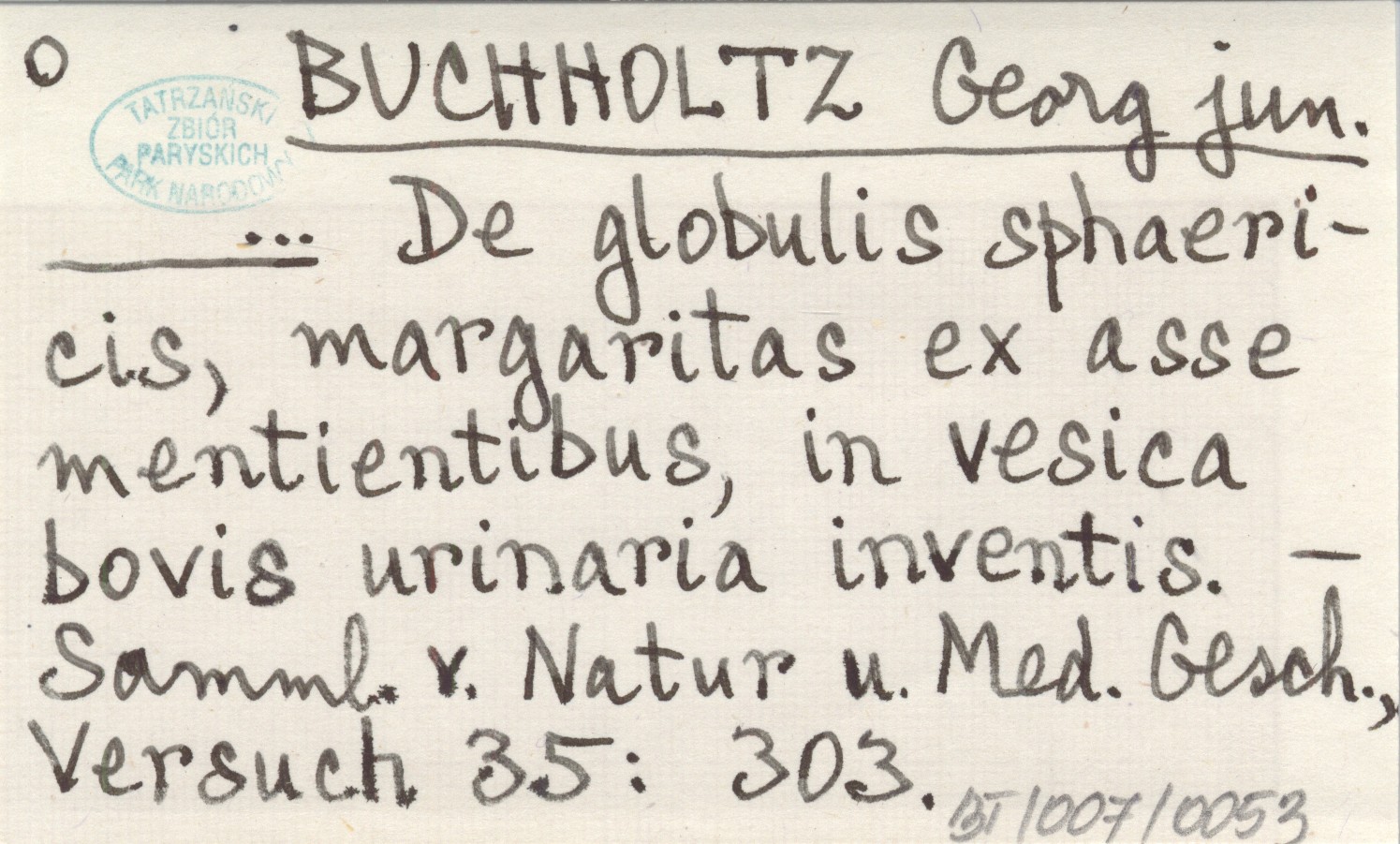 BUCHHOLTZ Georg jun. De globulis sphaericis, margaritas ex asse mentientibus, in vesica bovis urinaria inventis.