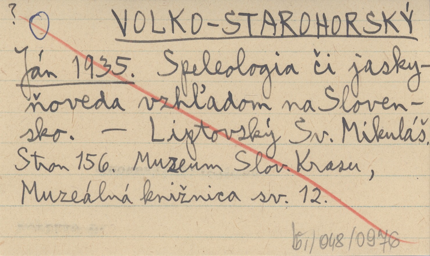 VOLKO-STAROHORSKÝ Ján 1935 Speleologia či jaskyňoveda vzhľadom na Slovensko.