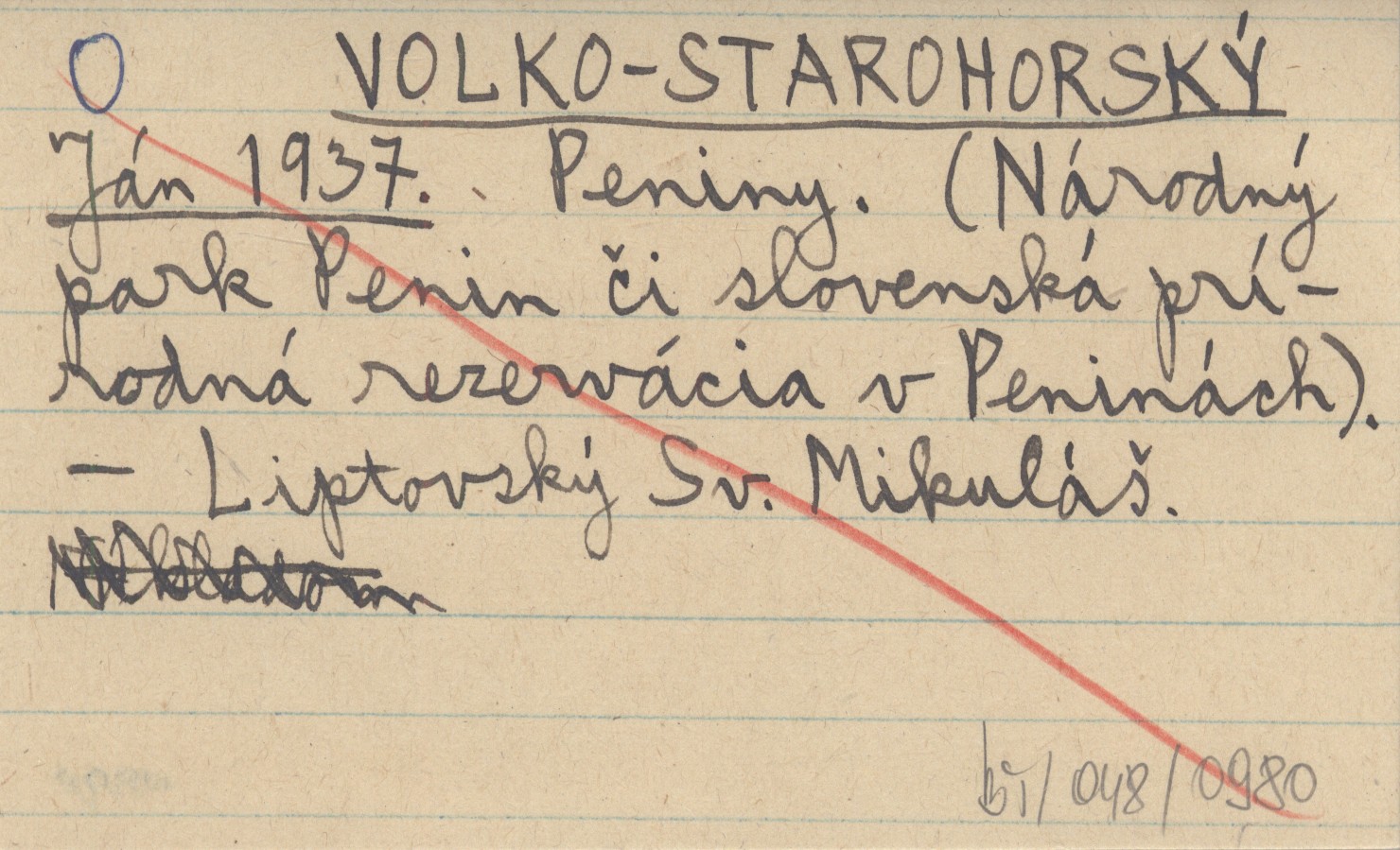 VOLKO-STAROHORSKÝ Ján 1937 Peniny. (Národný park Penin či slovenská prírodná rezervácia v Peninách).
