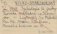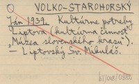 VOLKO-STAROHORSKÝ Ján 1939 Kultúrne potreby Liptova (kultúrna činnos» "Múzea slovenského krasu").