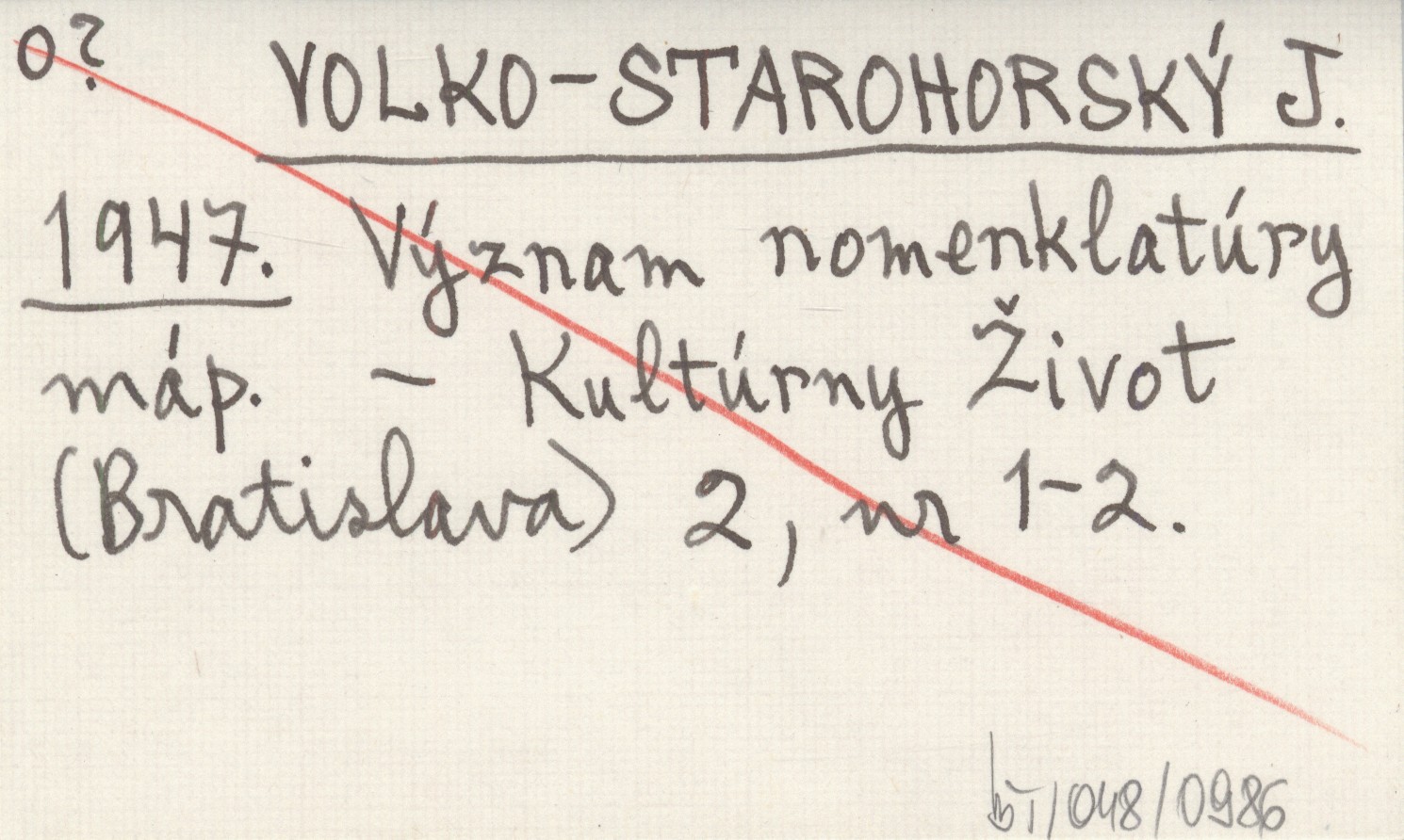 VOLKO-STAROHORSKÝ J. 1947 Význam nomenklatúry máp.