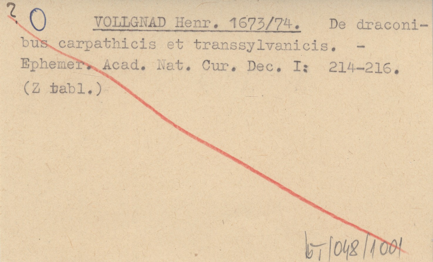 VOLLGNAD Henr. 1673/74 De draconibus carpathicis et transsylvanicis.