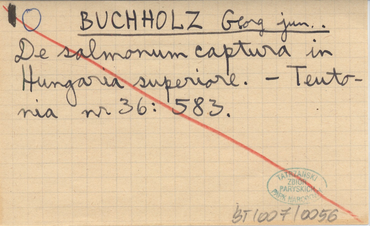 BUCHHOLZ Georg jun. De salmonum captura in Hungaria superiore.