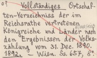 Vollständiges Ortschaften-Verzeichniss der im Reichsrathe vertretenen Königreiche und Länder nach den Ergebnissen der Volkszählung vom 31. Dec. 1890. 1892