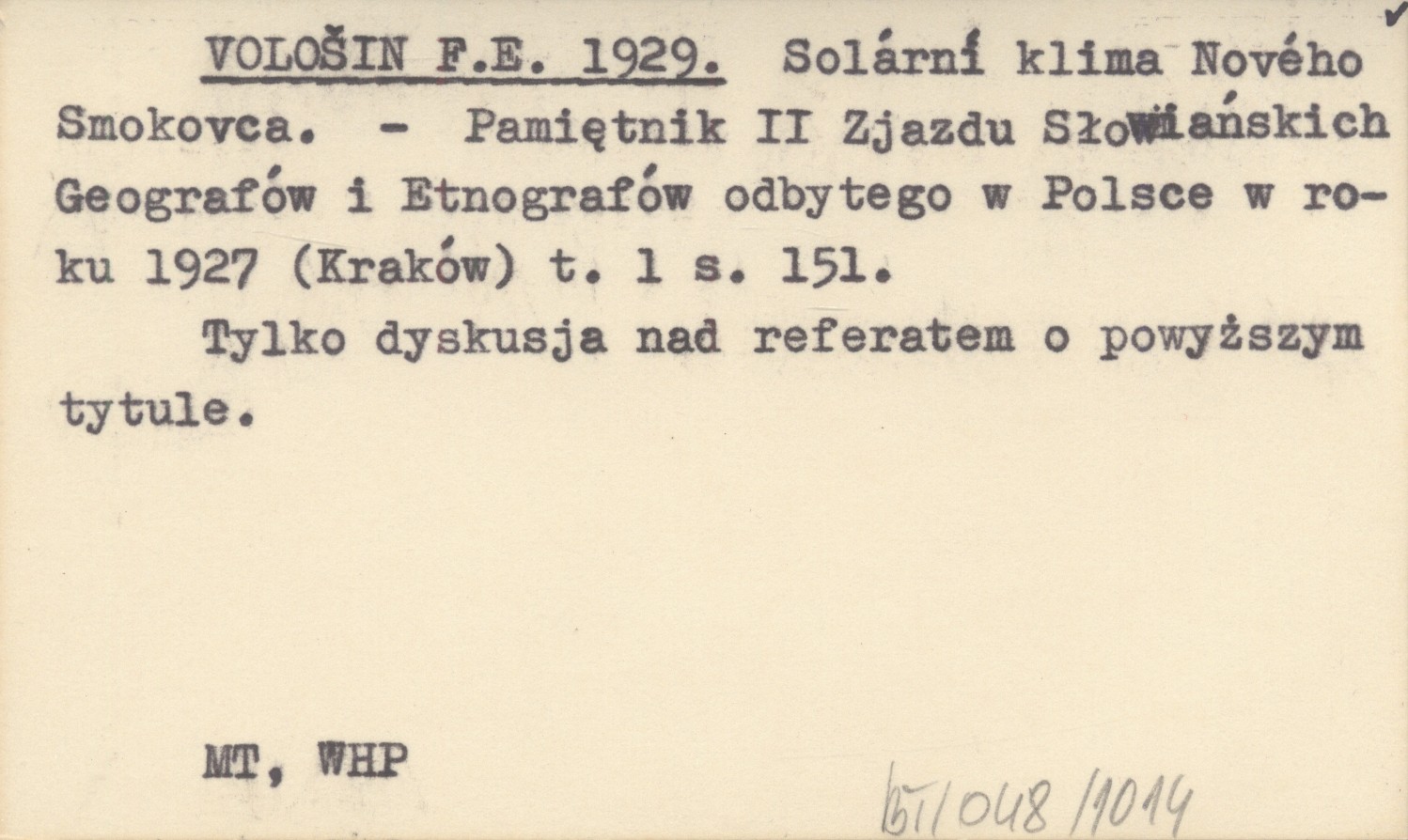 Pamiętnik II Zjazdu Słowiańskich Geografów i Etnografów odbytego w Polsce w roku 1927 (Kraków) , T. 1: 151. Tylko dyskusja nad referatem o powyższym tytule.