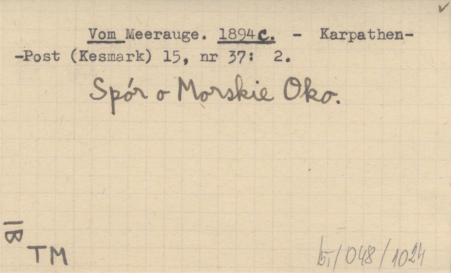 Karpathen-Post (Kesmark) , 15, nr 37: 2. Spór o Morskie Oko.