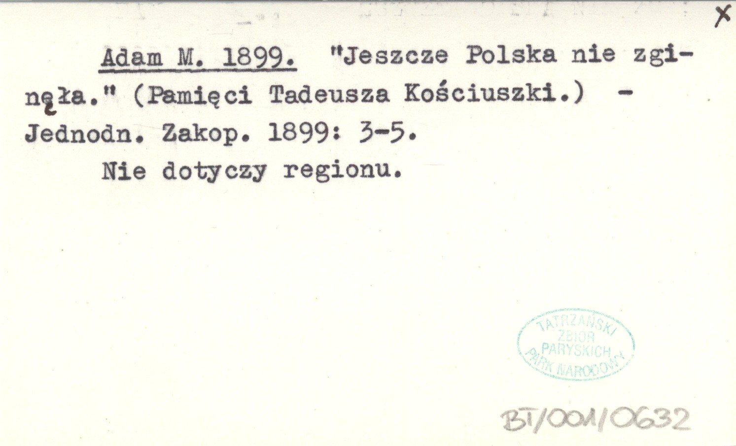 Adam M. 1899 "Jeszcze Polska nie zginęła". (Pamięci Tadeusza Kościuszki.)