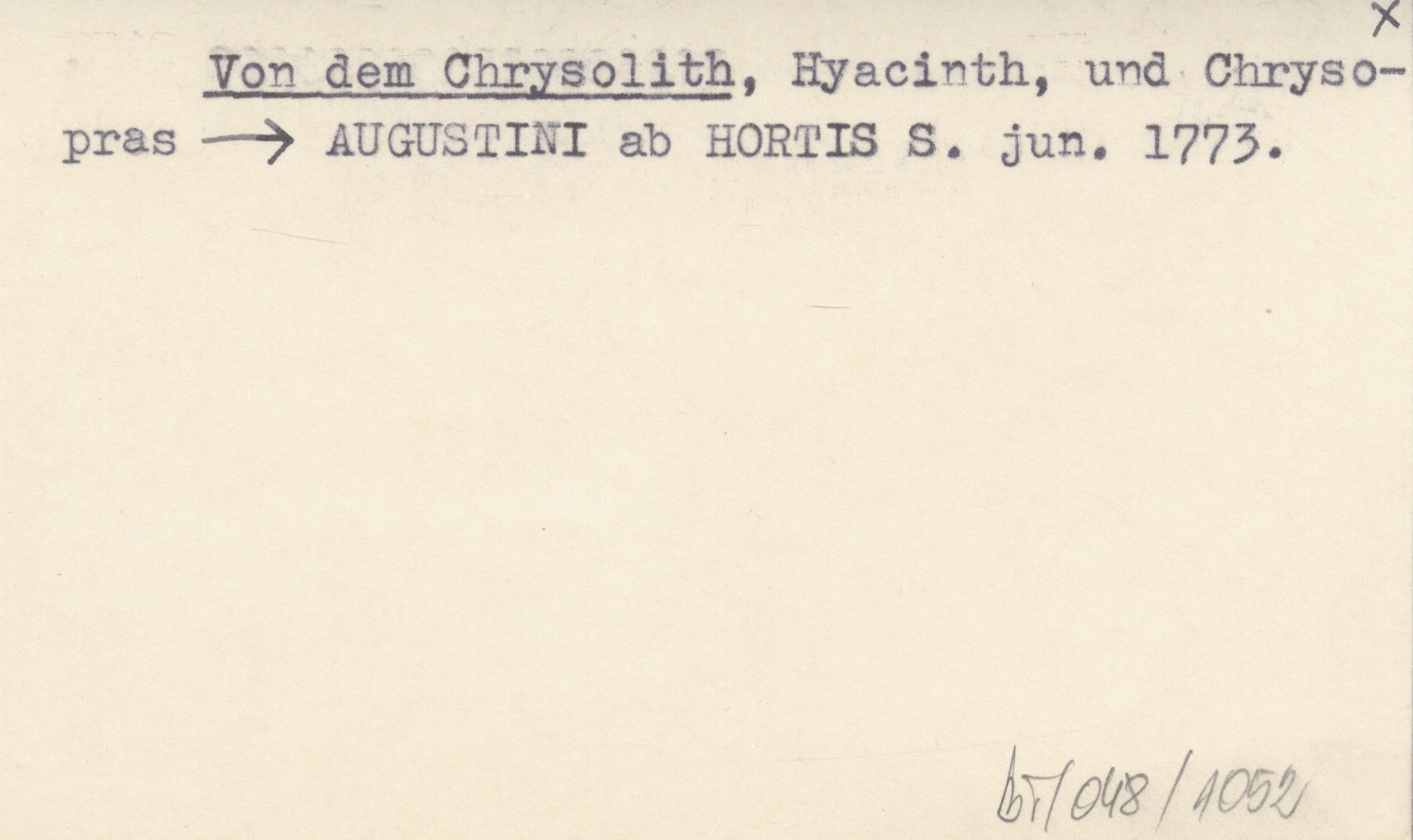 AUGUSTINI ab HORTIS S. jun. 1773