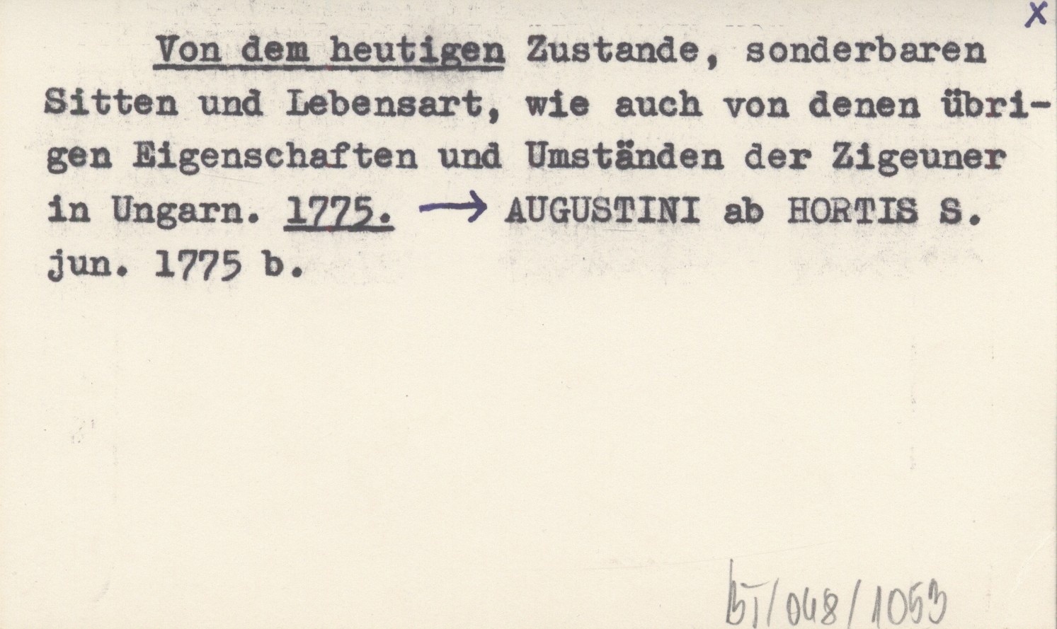 Von dem heutigen Zustande, sonderbaren Sitten und Lebensart, wie auch von denen übrigen Eigenschaften und Umständen der Zigeuner in Ungarn. 1775