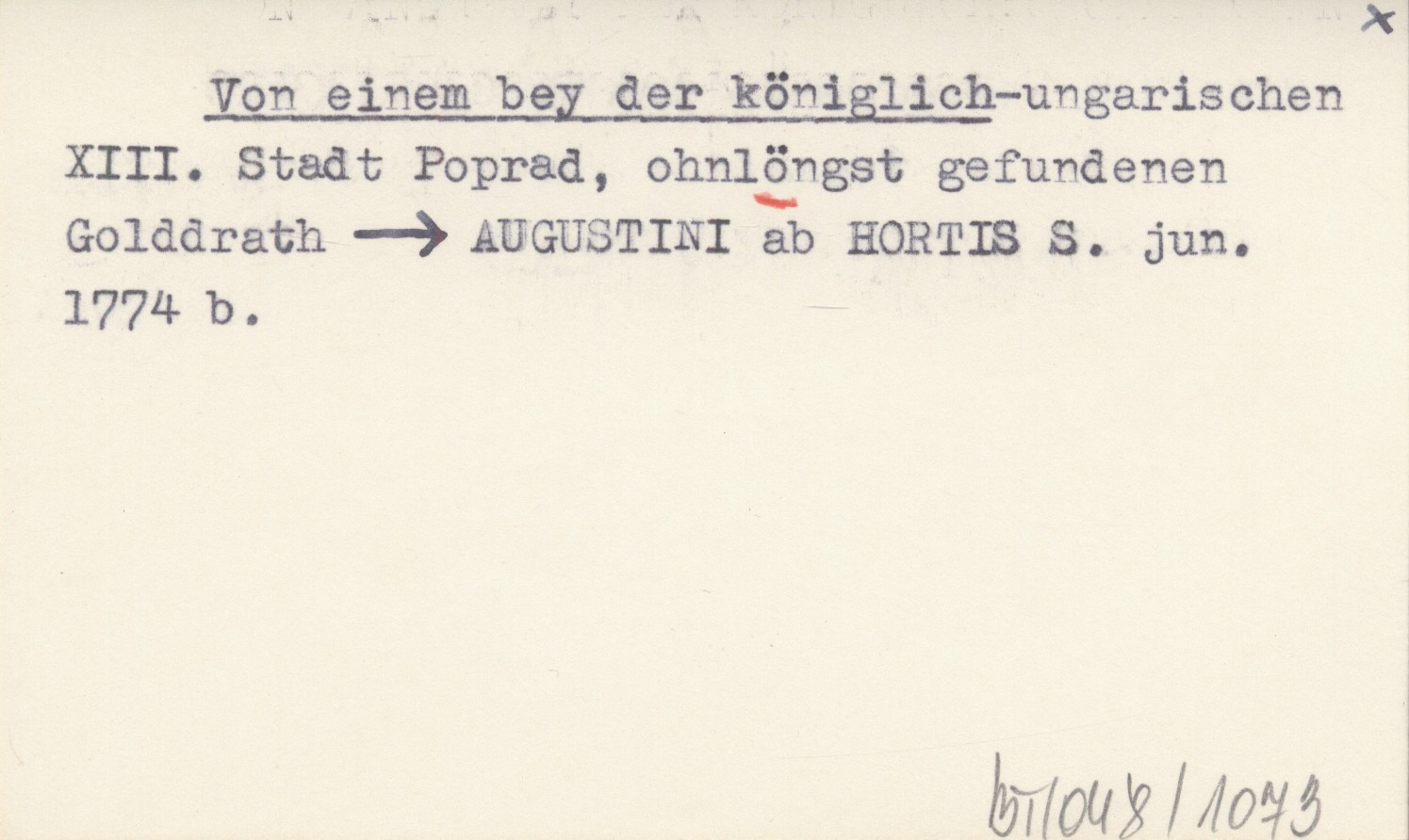 Von einem bey der königlich-ungarischen XIII. Stadt Poprad, ohnlöngst gefundenen Golddrath.