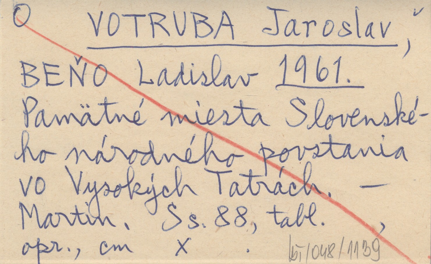 VOTRUBA Jaroslav BEŇO, Ladislav. ; 1961 Pomätné miesta Slovenského národného povstania vo Vysokých Tatrách.