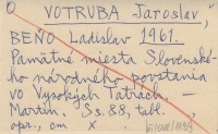 VOTRUBA Jaroslav BEŇO, Ladislav. ; 1961 Pomätné miesta Slovenského národného povstania vo Vysokých Tatrách.