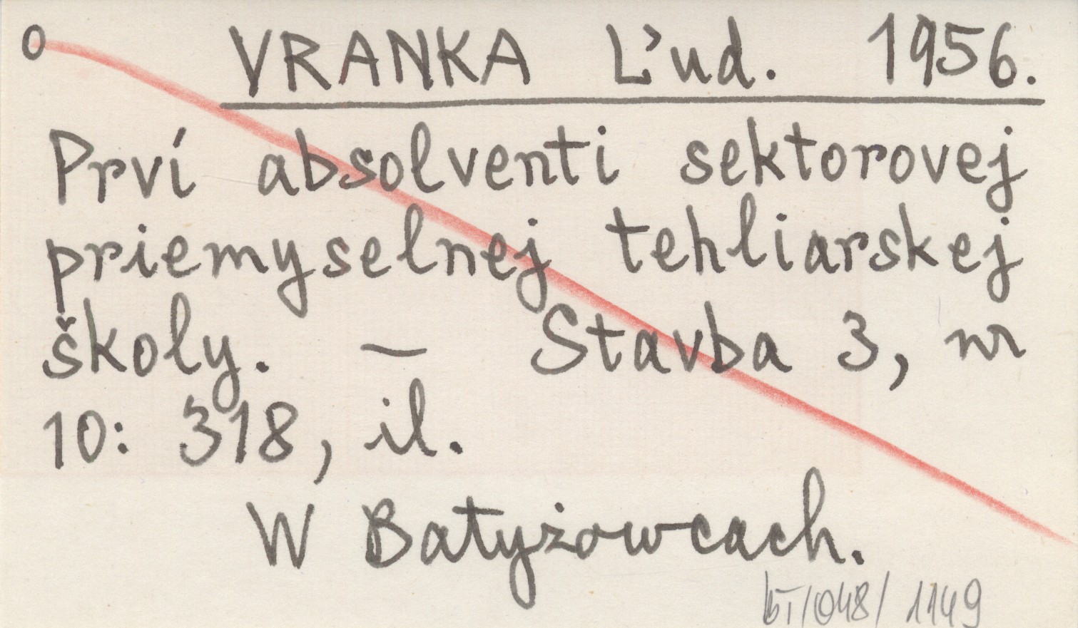 VRANKA Ľud. 1956 Prví absolventi sektorovej priemyselnej tehliarskej školy.