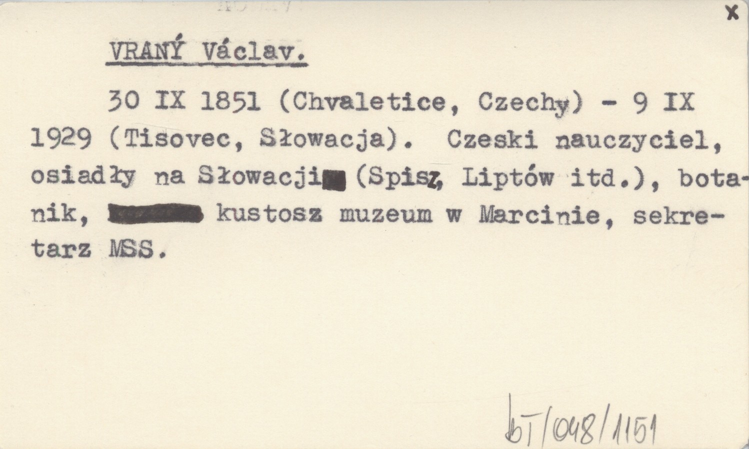 30 IX 1851 (Chvaletice, Czechy) - 9 IX 1929 (Tisovec, Słowacja). Czeski nauczyciel, osiadły na Słowacji (Spisz, Liptów itd.), botanik, kustosz muzeum w Marcinie, sekretarz MSS.